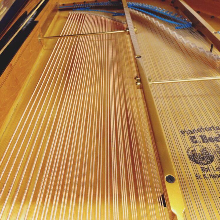 グランドピアノ マイスターP.Yamauchi氏修復ベヒシュタイン平行弦197とB203 展示中 チューニングピン回り
