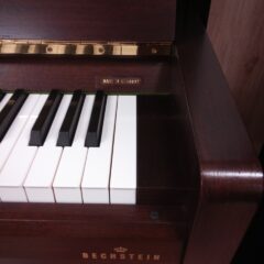 このモデルはベヒシュタインの代名詞とも言われる総アグラフ設計で、音に更なる透明感を与えています。除響板+アグラフの効果で音の分離感と輪郭の明瞭さが素晴らしく、タッチコントロールで多彩な音色を引き出すことが出来ます。外装は黒艶にロゴや蝶番はシルバーを採用し、モノトーンの美しさが目を引きます。