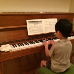 3本の弦とハンマーの接触を同時にすることはピアニシモの音は、はっきりと通る音になり、フォルテの音色は割れにくく響く良い音になります。ダイナミックレンジも広がります。弦やハンマーの寿命にも影響し、とても重要な作業です。写真の様にハンマーを持ち上げ、弦に接触させ弾いて当たり具合を確認しながら作業を進めて行きます。アプローチは弦を調整する方法とハンマーを調整する方法があります。